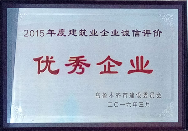 日前,烏魯木齊市建設委員會公布對全市建筑企業誠信綜合評價(評價包括市場行為、質量行為及安全文明施工)結果,我公司在全市660家企業中排名12名,公司被授予“2015年度建筑業企業誠信評價優秀企業”。