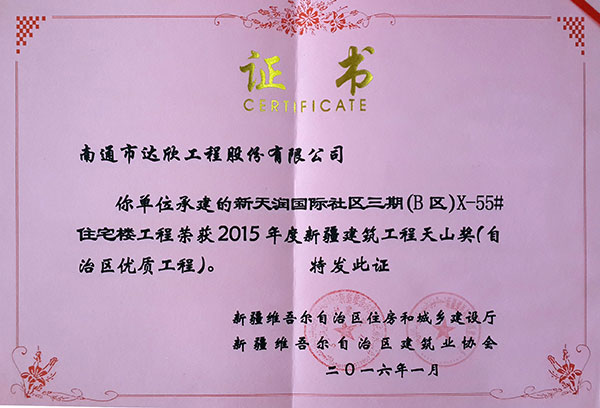 5月30日,從新疆建筑業協會組織召開的年度大會上獲悉,由第十一工程公司承建的新天潤B03—55號,以高標準、高質量施工榮獲新疆維吾爾自治區優質工程“天山獎”。