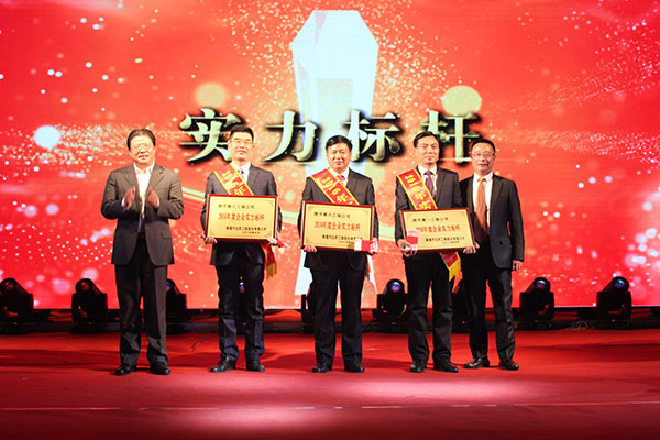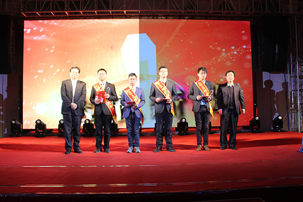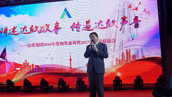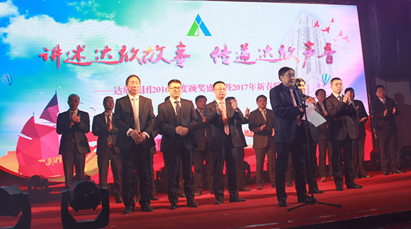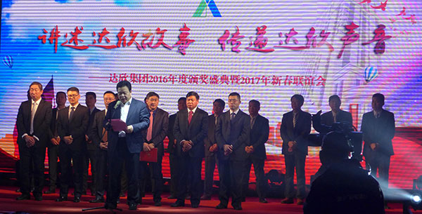 集團黨委書記劉厚純宣讀了表彰決定, 縣領導為獲得集團2016年度的創優標桿、實力標桿、項目標桿與管理標桿、達欣新銳等先進個人代表進行了頒獎。