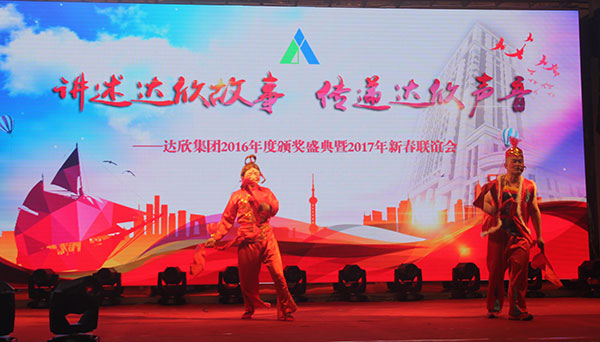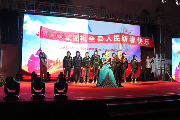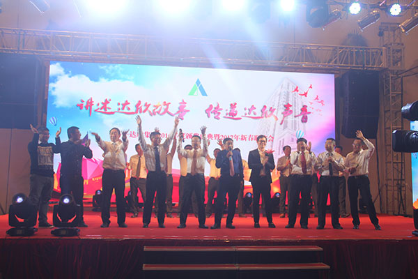 集團高管們在澎湃的“達欣之歌”聲中激情登場,公司董事長馬和軍進行了致辭答謝。他回顧了公司 一年來所取得的輝煌成績,感謝社會各界及公司全體同志們的努力,并對公司的未來發展之路描繪了藍圖;接著,縣委書記陸衛東發表重要講話, 他指出,建筑業是我縣的傳統產業,也是一個富民強勢產業,還是我縣財政收入的重要來源之一,作為縣內的骨干企業,達欣公司步入了公司歷史以來發展最快、榮譽最高、分配最多、貢獻最大的時期,他希望公司要加快發展,高起點定位,突出重點,好中求快,實現達欣新飛躍。