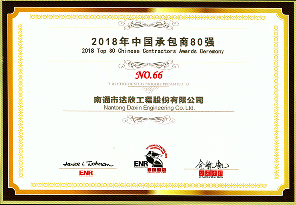 11月8日上午,2018年ENR/建筑時報中國承包商80強榜單在中國江西省南昌市隆重舉行頒獎典禮,來自建設主管部門、中國建筑業協會、中國勘察設計協會、中國對外承包工程商會等行業協會,美國ENR雜志高層以及國內140家入圍“中國承包商80強和工程設計企業60強”榜單的企業高管匯聚一堂,共同見證新一屆中國建筑業最強陣容的誕生。南通市達欣工程股份有限公司首次成功入圍中國承包商80強第66名、最具效益承包商第10名。
