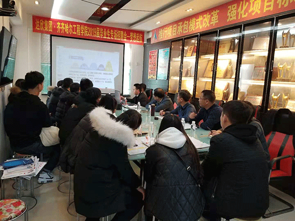 畢業生們首先觀看了集團公司和工程公司宣傳片,工程公司經理陳貴榮就公司的發展概況、企業文化、本次招聘的工作崗位以及薪酬、福利等內容作了介紹。隨后,畢業生們進行了自我簡介,現場咨詢了有關工作的情況,陳經理一一進行了詳細解答,幫助他們更好的了解達欣集團。聽取了介紹后,畢業生們也紛紛表達了想加入到達欣團隊中的意愿。