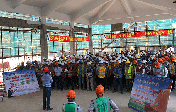 項目部認真組織精心策劃,項目負責人馬寧偉從“強力推動、精心組織、狠抓落實、確保安全”四個方面進行動員,項目部將集中開展“防風險、除隱患、遏事故”主題宣講、安全宣傳咨詢、事故警示教育、應急救援演練等系列活動。同時舉行了項目全體施工人員安全月簽名活動,并現場宣布“安全生產月”活動啟動。會上要求,項目始終貫徹執行集團“安全高效鑄精品 環保誠信創輝煌”的安全管理方針,把項目安全生產擺到更加突出、更加重要的位置,動員全體員工以“安全生產月”活動為契機,以活動促工作,以活動促安全,把全體員工的安全意識提升到一個新高度,把無錫惠山新城項目的安全工作推向一個新臺階。