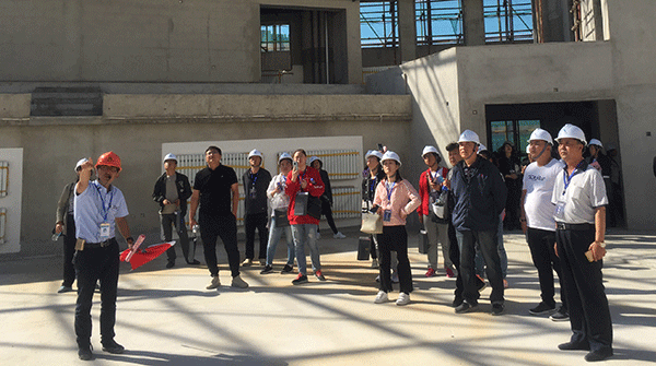 觀摩活動開展前,工程公司技術負責人丁園園就項目綠色施工、質量安全標準化施工、BIM技術運用等方面作了經驗介紹。觀摩中,項目技術負責人洪陽就項目BIM技術在場地布置模擬、樣板策劃、碰撞檢查與優化、可視化交底、凈高分析與控制、日常安全質量管理等方面做了詳細講解。