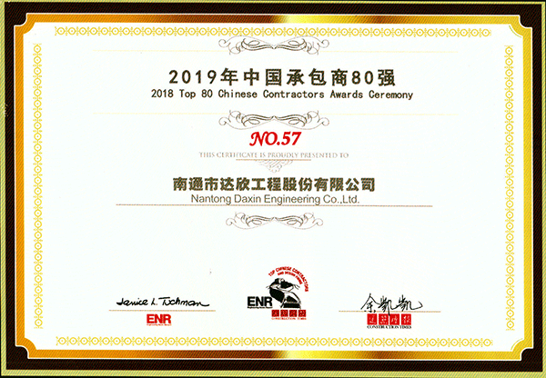 11月8日,由美國《工程新聞記錄》(ENR)和中國《建筑時報》兩家權威媒體共同主辦的“2019年度中國承包商80強和工程設計企業60強頒獎典禮”在浙江省杭州市舉行,上榜企業齊聚一堂,共同見證中國建筑業新一屆標桿企業的誕生。在發布的榜單中,達欣集團再次進入建筑行業最強方陣,在中國承包商80強中位列第57位。