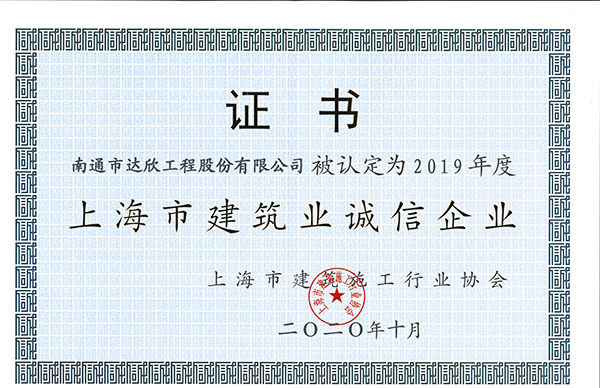 近日,上海市建筑施工行業協會官網發布了《關于公布2019年度上海市建筑業誠信企業的通知》( 滬建施協(2020)25號)。達欣集團再次榮獲“上海市建筑業誠信企業”稱號,這是集團連續12年獲得該項榮譽。