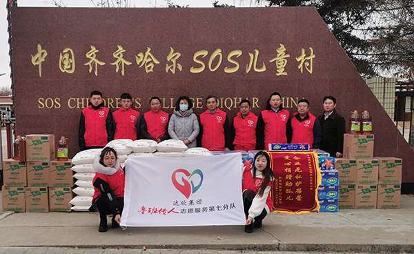 11月19日,達欣集團·魯班傳人志愿者服務第七分隊在第七工程公司總經理陳貴榮的帶領下來到齊齊哈爾市SOS兒童村,給村里的孩子們送來了2000斤面粉,1000斤豆油,100提衛生紙等生活物資,以表達對孩子們的關愛和關心。