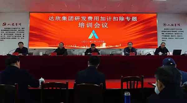 2月23日下午,達欣集團召開2021年度研發費用加計扣除政策專題培訓會議。會議特別邀請國家稅務總局海安市稅務局稅政管理股副股長 曹海勤、國家稅務總局海安市稅務局西城稅務分局局長冒建銀、副局長徐國際。曹海勤股長擔任會議講師,集團副總經理陶成華主持會議,會議采取線上、線下的模式召開。