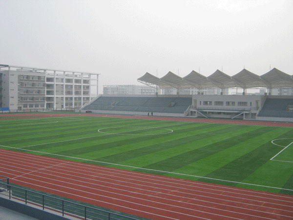 江蘇省海安縣職業教育中心校體育場為400米塑膠田徑運動場工程,田徑場占地面積16999m2,主看臺長150米,寬17.5米,輔看臺長104米,寬10米。主看臺占地面積為2173.4m2,輔看臺占地面積為1008m2,田徑場跑道為混合型塑膠面層,中間足球場為進口人工草皮,周邊輔助區為人工草皮。該體育場的建成將為海安群眾性體育活動的開展提供便利。