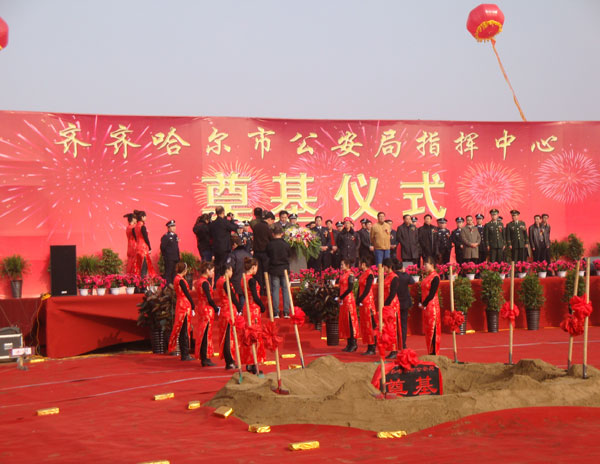 奠基儀式由市公安局黨委委員、工會主席萬迎新主持,副市長、市公安局黨委書記、局長吳剛致辭,他在致辭中說作為全市矚目、全警矚目的大項目、公安基礎建設的大工程,衷心希望南通市達欣工程股份有限公司的建設者們精心施工,將公安指揮中心建設成一流的精品工程。公司監事會主席、第七工程公司經理王建國同志在奠基儀式上作表態性發言,他表示要認真履行合同,努力將本項目打造成齊市的典范工程、黑龍江省的精品工程、全國的優質工程,讓建設方滿意,讓社會放心。