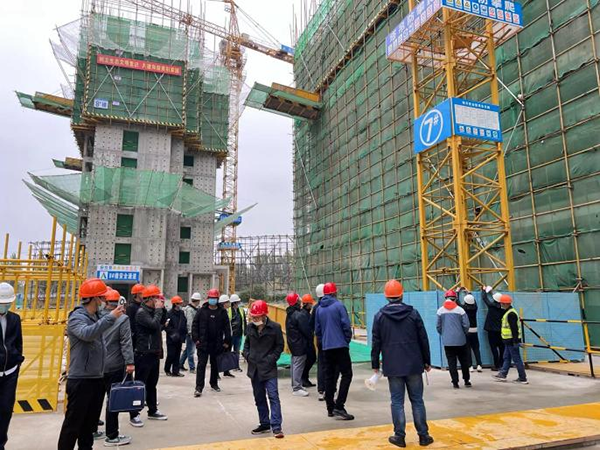 領導們主要觀摩了誠園二期5#地塊項目集中交底樣板展示區、實體工藝樣板展示區、毛坯交付樣板展示區、公區交付樣板展示區、現場安全體驗館、材料集中加工區、主體結構實體質量及安全生產標準化在現場的應用等。工程質量和安全工作方面的亮點做法得到了現場觀摩團的一致認可和贊賞。