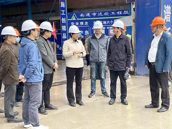 在查看項目現場過程中,陳根軍向領導們詳細講解了總部生產及研發中心建設項目的整體工程進度和規劃規模,以及取得的成績。楊白英主席對當前項目建設取得的成果表示滿意,對達欣在工程形象、進度、質量方面的突出表現予以高度肯定。調研中,楊白英強調,項目部要嚴格落實施工安全各項制度,時刻牢記安全生產制度,杜絕麻痹大意和僥幸心理,做精做細項目工程,確保項目建設高質量平穩推進。