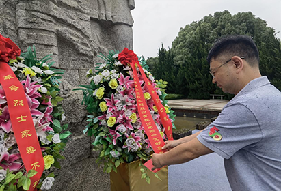 在抗日英雄群雕廣場,全體黨員懷著對革命烈士崇高的敬意,向革命英雄敬獻花籃,鞠躬悼念中銘記歷史。支部書記倪志榮帶領全體黨員重溫入黨誓詞,面對鮮紅的黨旗和莊嚴的誓詞,共同高舉右拳,莊嚴宣誓。