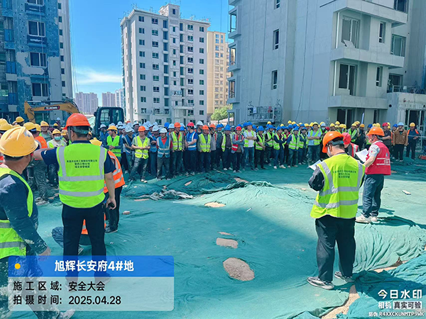 4月28日,為進一步加強施工現場安全管理,提升施工人員的安全意識,確保“五一”期間項目施工安全平穩推進。旭輝長安府項目部組織各施工班組召開了一場意義非凡的“五一”節前安全教育大會。