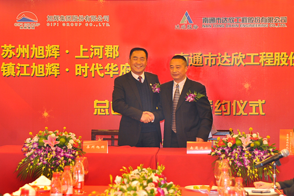 3月20日南通市達欣工程股份有限公司與旭輝集團股份有限公司在上海就蘇州旭輝·上河郡、鎮江旭輝·時代華府項目舉行合同簽約儀式。旭輝集團董事長林中、達欣公司副董事長、黨委書記劉厚純,分別發表了熱情洋溢的講話。雙方表示此次總包合同的簽約標志著旭輝集團與達欣公司長期合作將會有著更為廣闊的空間!蘇州上河郡項目總建筑面積92075m2,由5棟13層小高層住宅、6棟5層商業用房和一棟幼兒園組成;時代華府項目總建筑面積161000m2,由9棟32層高層住宅組成。 旭輝集團股份有限公司成立于2000年,是集房地產開發、建筑施工、物業管理于一體的全國性房地產開發企業,連續5年穩居中國房地產企業百強。湖南旭湘·華府工程是我公司與旭輝集團的首度合作,我公司項目團隊以良好的配合、優質高效的速度,贏得了建設方與當地建設主管部門的肯定,贏得了市場聲譽,該項目先后獲得“全國AAA級安全文明標準化誠信工地”、湖南省“文明工地”、湖南省“安全標準化示范工程”、長沙市“優質結構”等稱號。