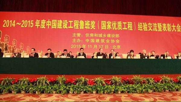11月17日,2014-2015年度中國建設工程魯班獎(國家優質工程)經驗交流暨表彰大會在北京釣魚臺國賓館舉行。由我公司承建的齊市公安局業務技術用房,參建的海安中洋公寓榮獲魯班金像獎。